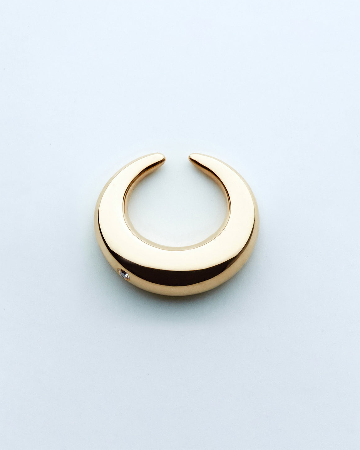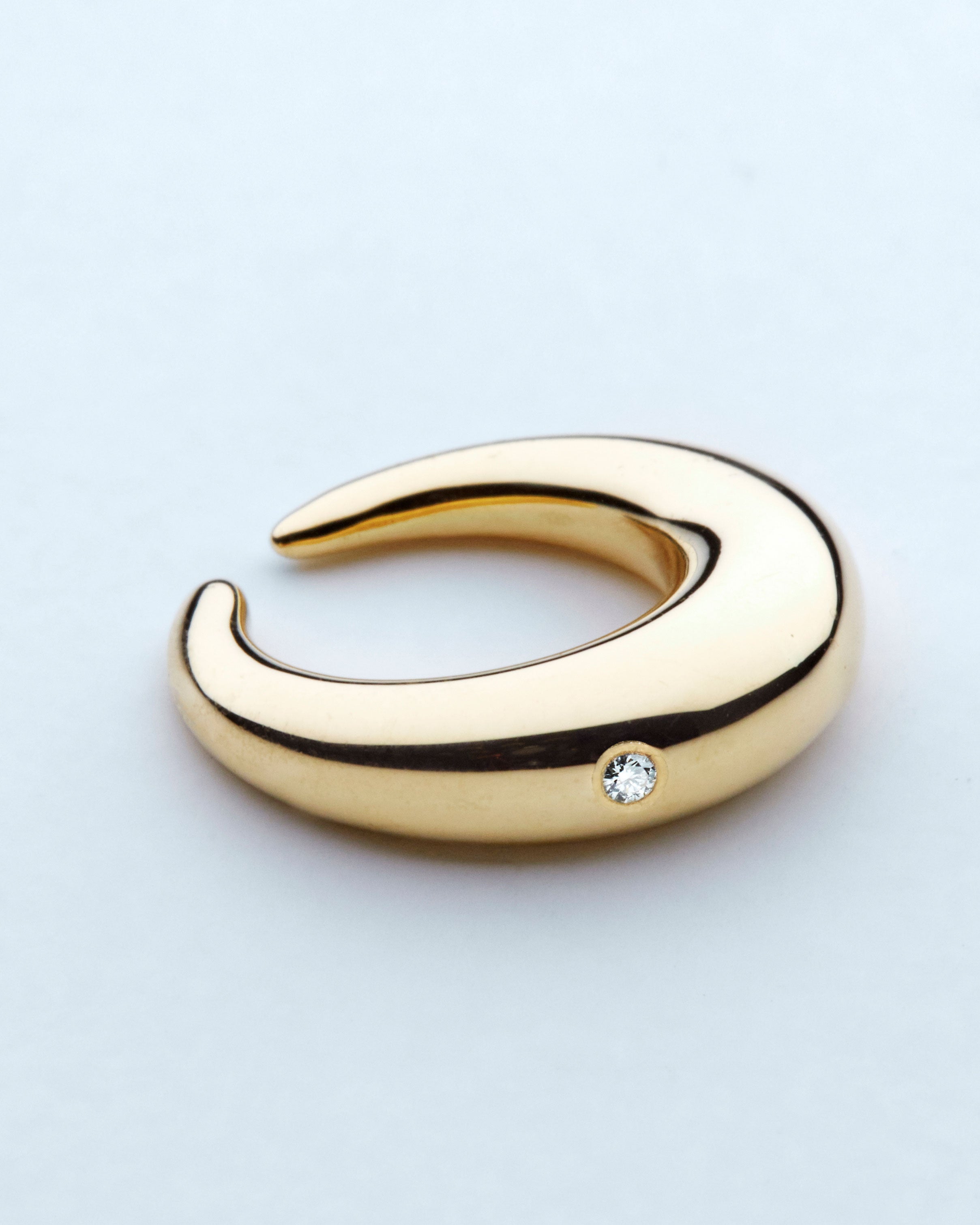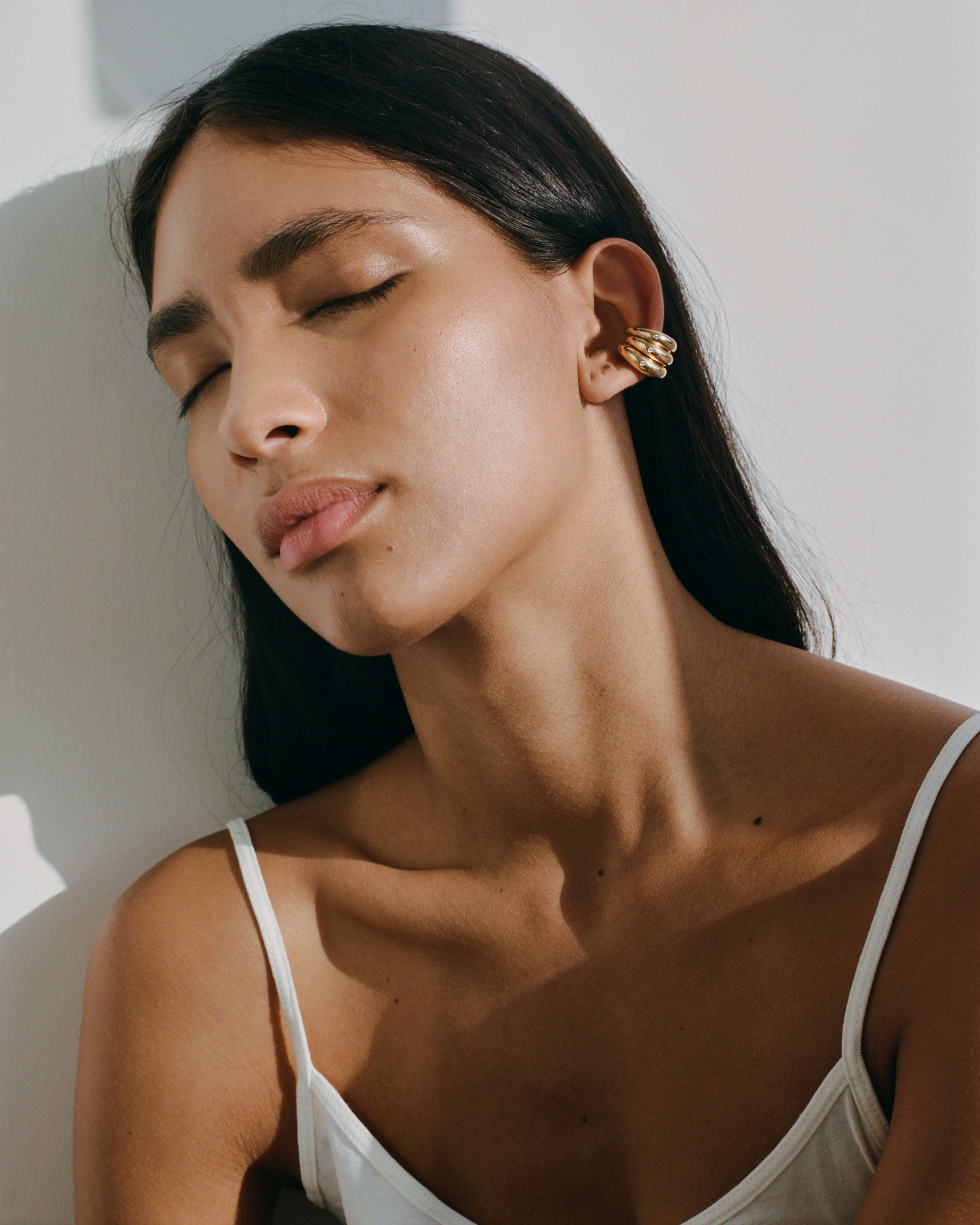 Designed to stack with other bombé ear cuffs or to be worn as a single piece. The model wears three Criolla Chiquita Ear Cuffs.