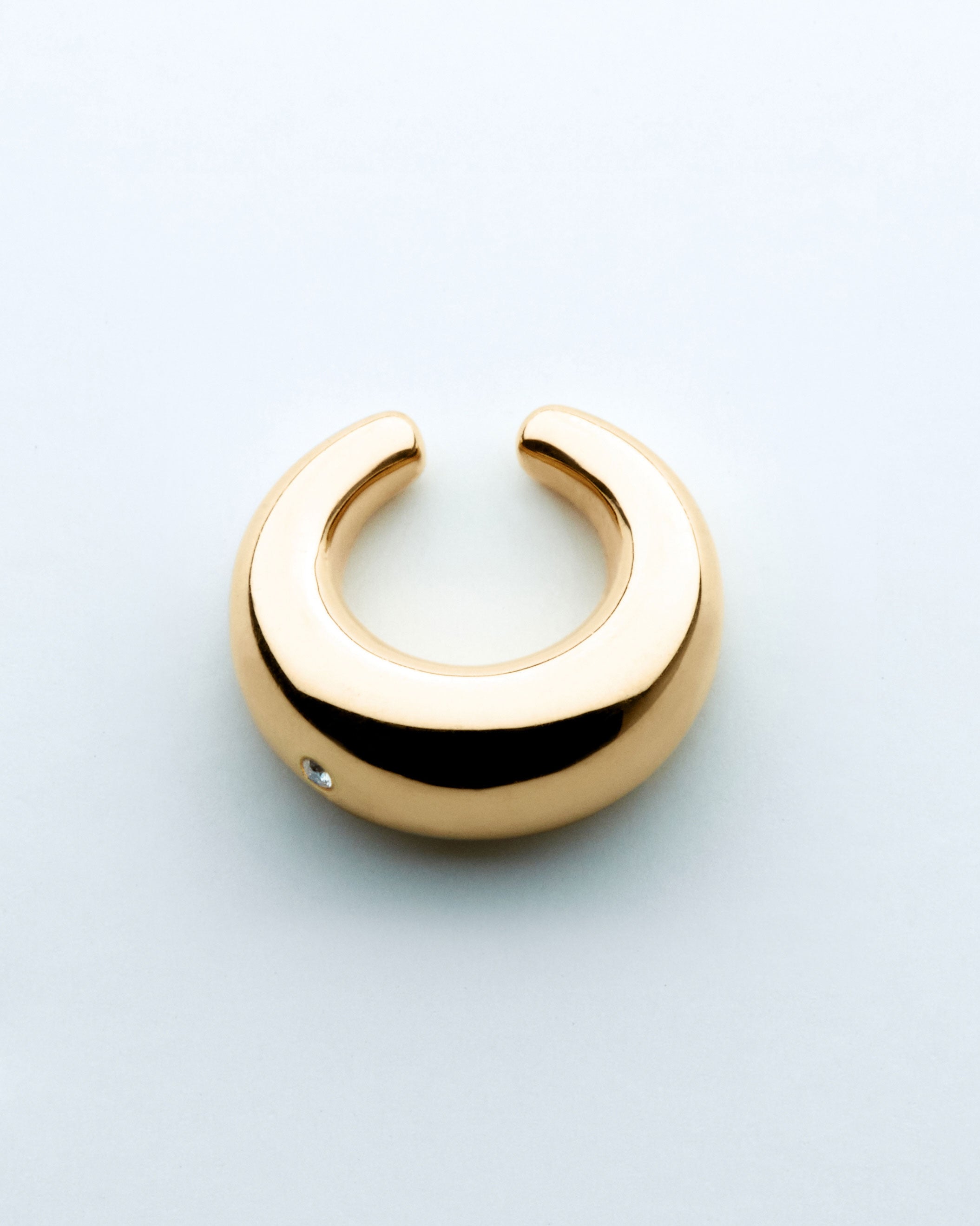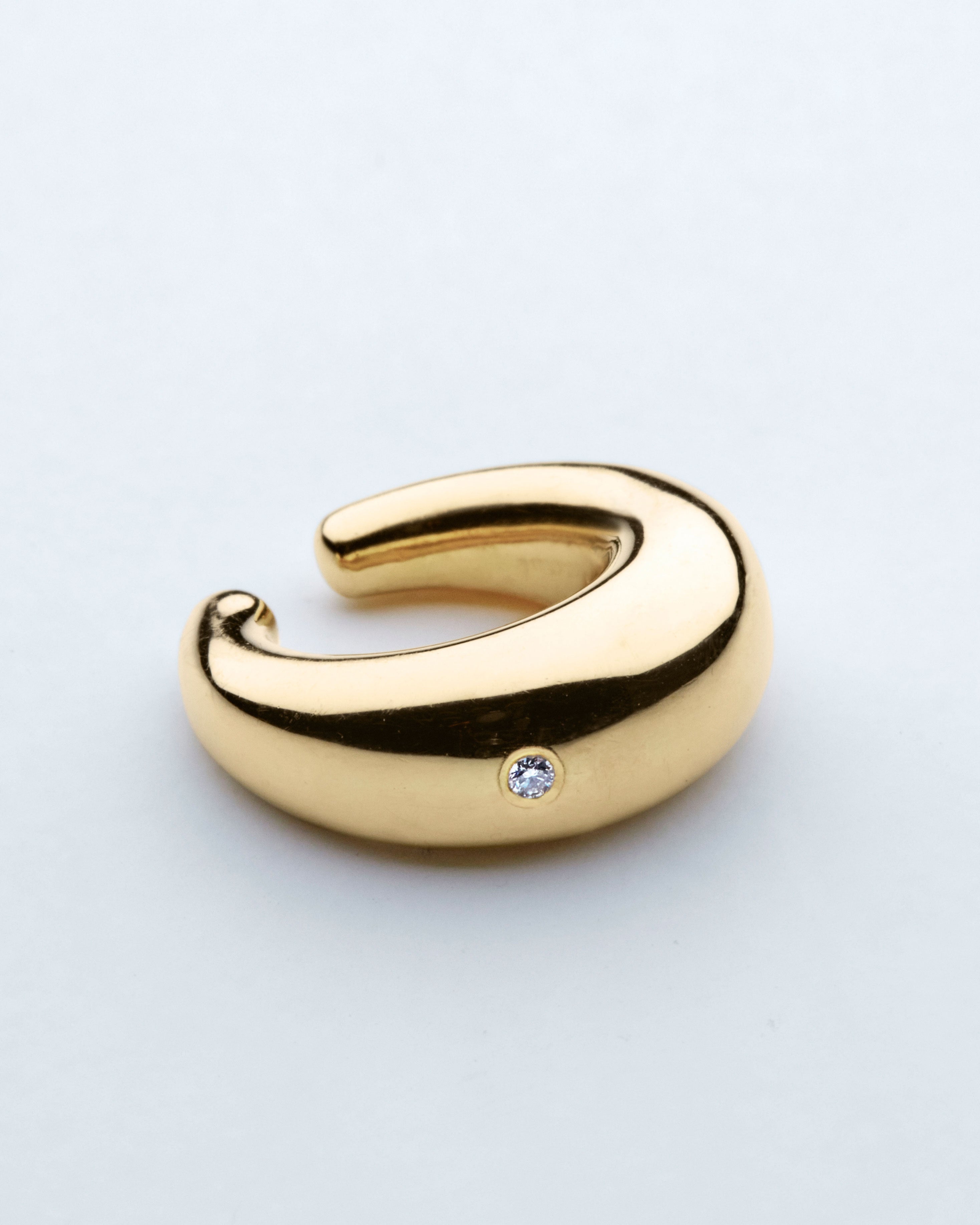 For our Criolla Grande Ear Cuff, our most iconic piece, we combined the traditional bombé shape with a pre-columbian design to create this sophisticated and bold earring. Hand-made with the highest attention to detail, this timeless 18K gold statement piece is made to be worn everyday. Featuring a brilliant-cut diamond drop.