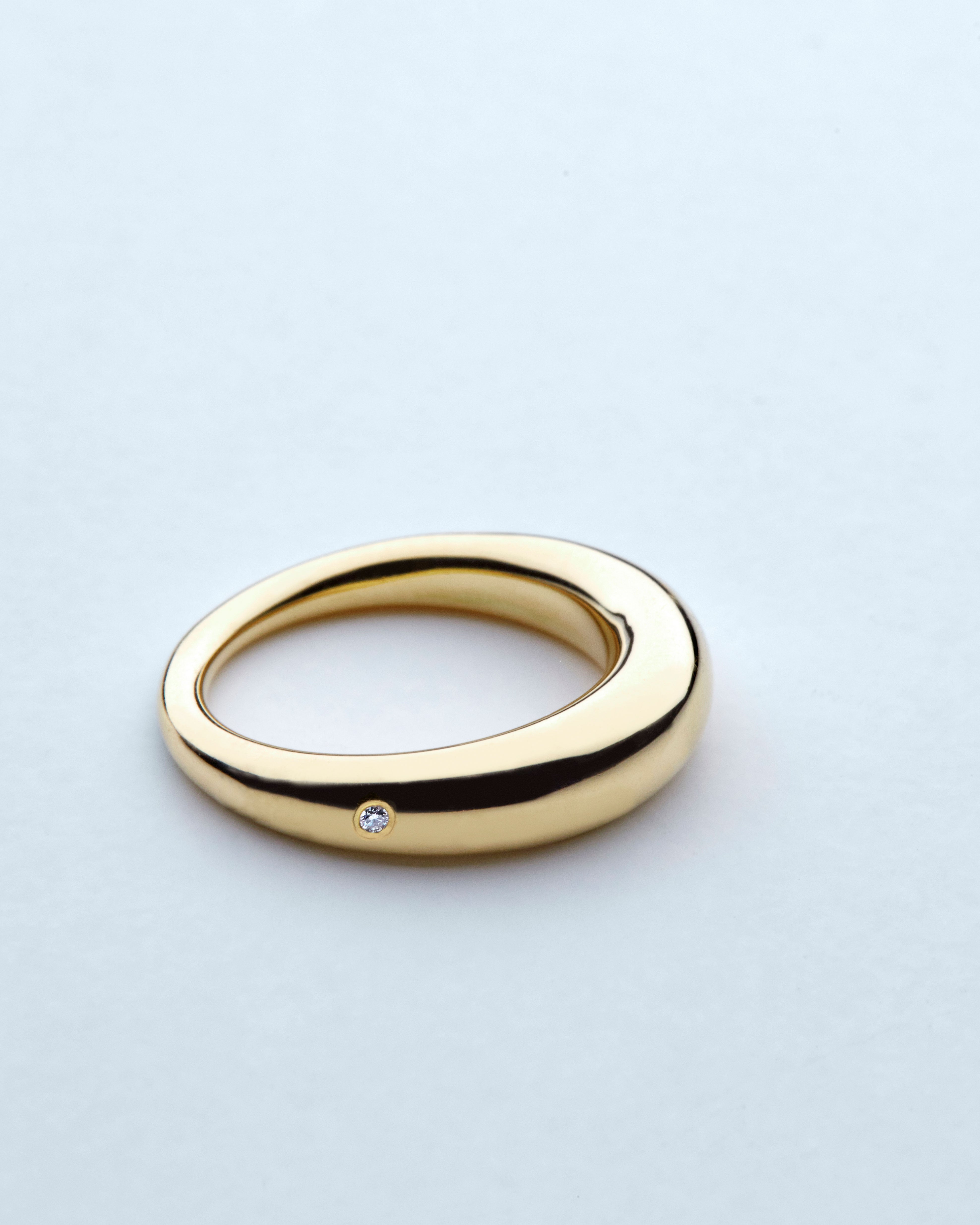 Our classic petite bombé shaped ring, hand-made with the highest attention to detail. Inspired by our family’s Eduardo ring, this timeless 18K gold essential piece is made to be worn everyday. Featuring a brilliant-cut diamond drop. Designed to stack with other bombé shapes or to be worn as a single piece.