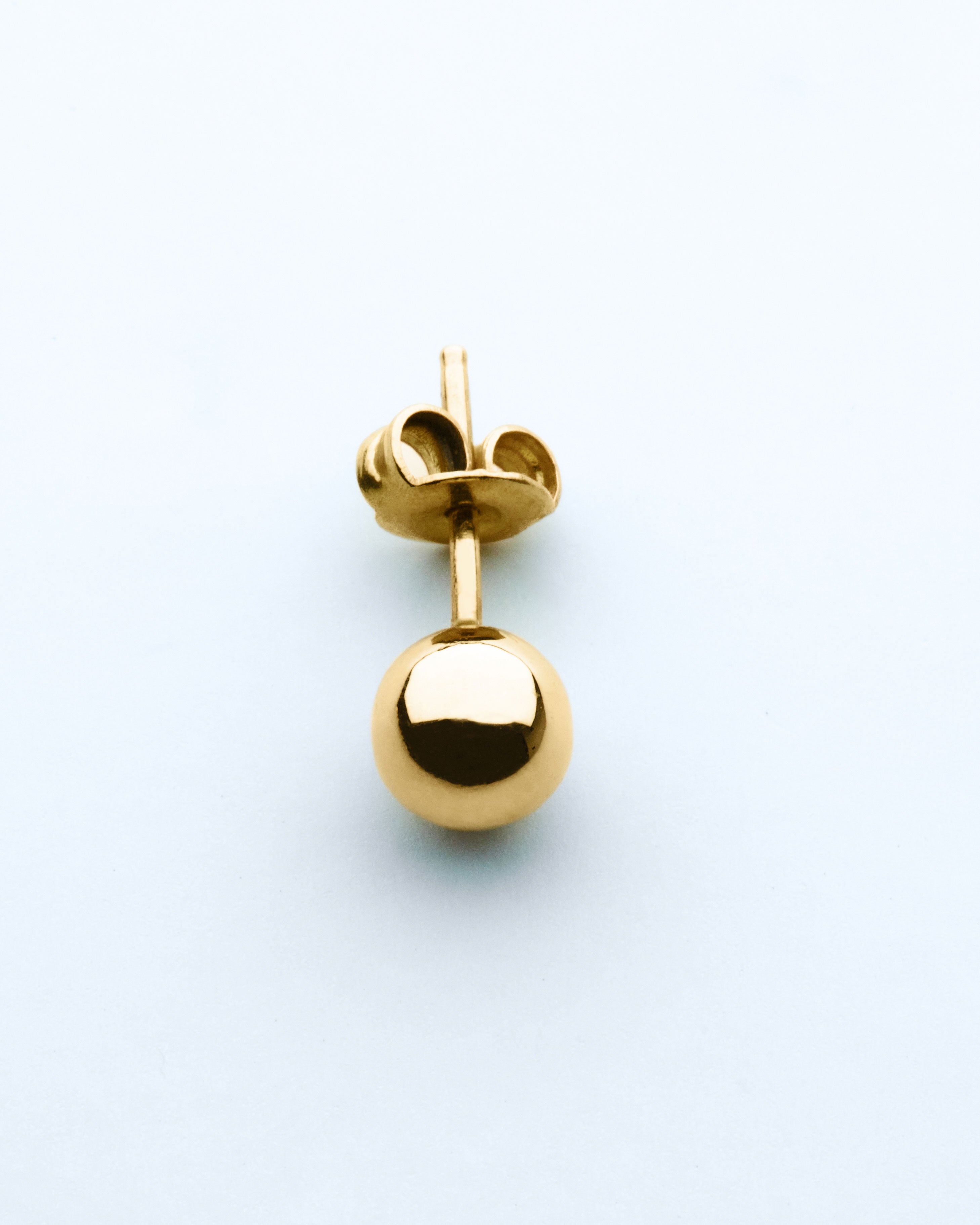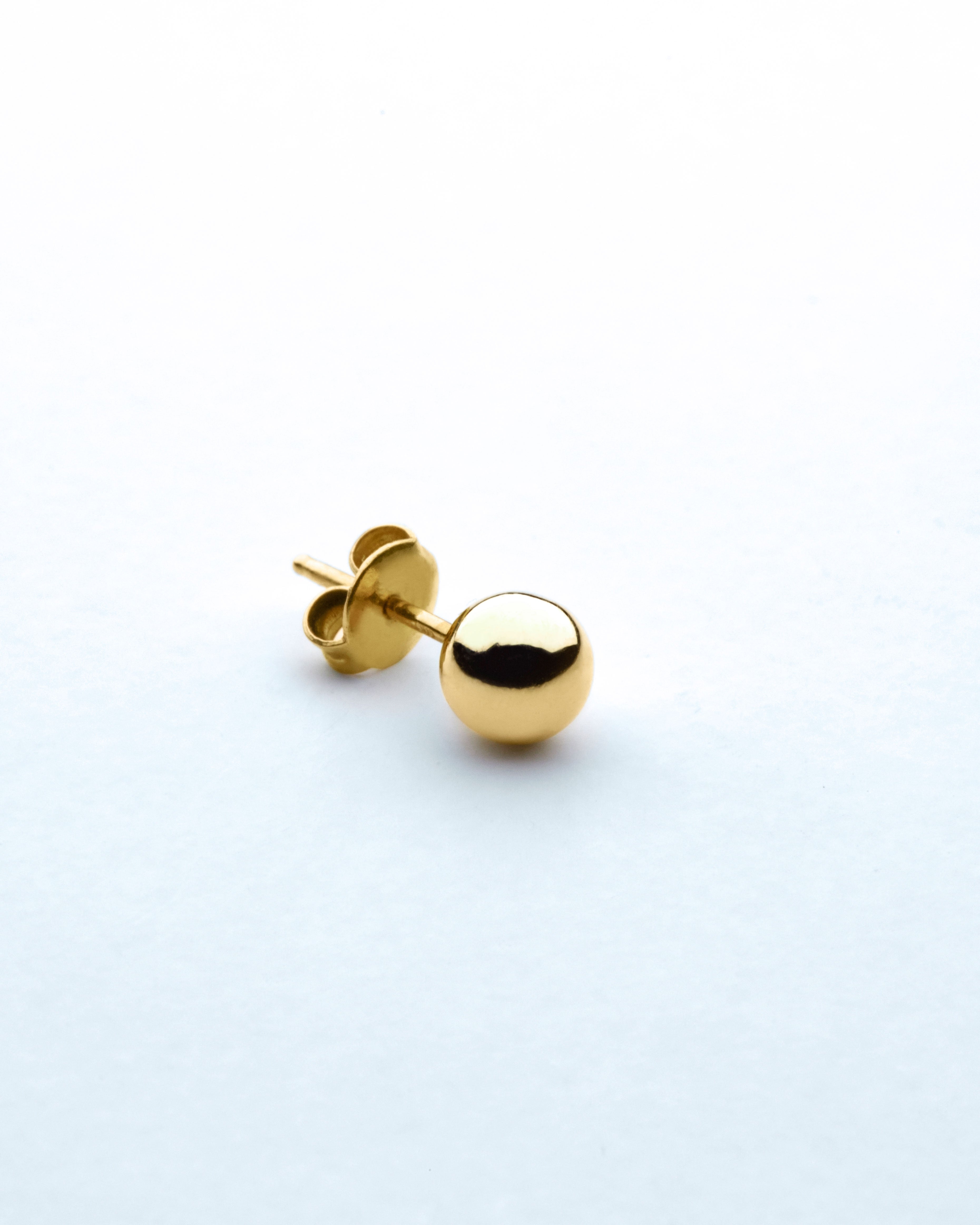 Our La Perla stud earring is an 8 mm 18K gold solid ball, handcrafted with the highest attention to detail. Sold single, made to wear as a pair or as a single. Available in 18k yellow gold and white gold.