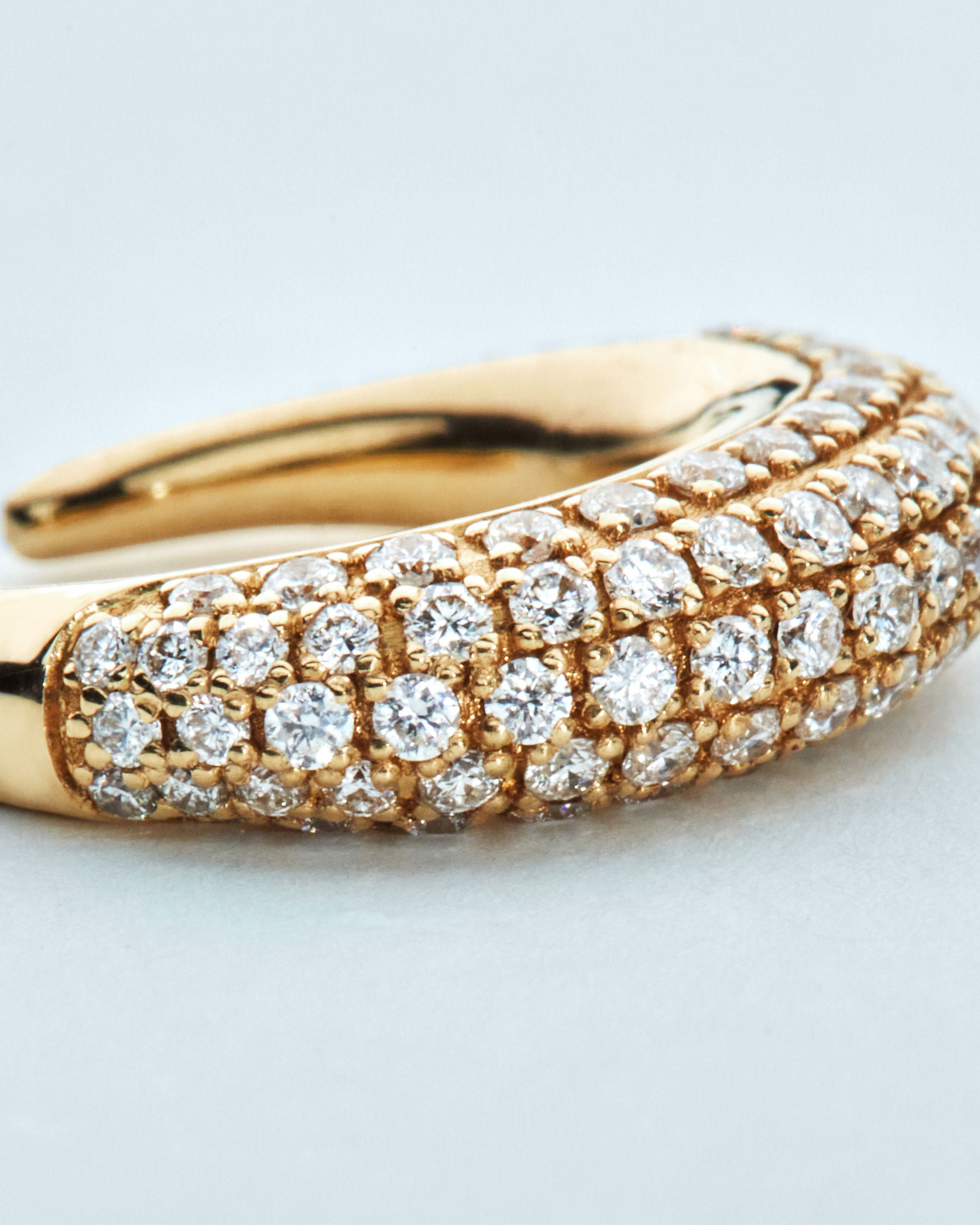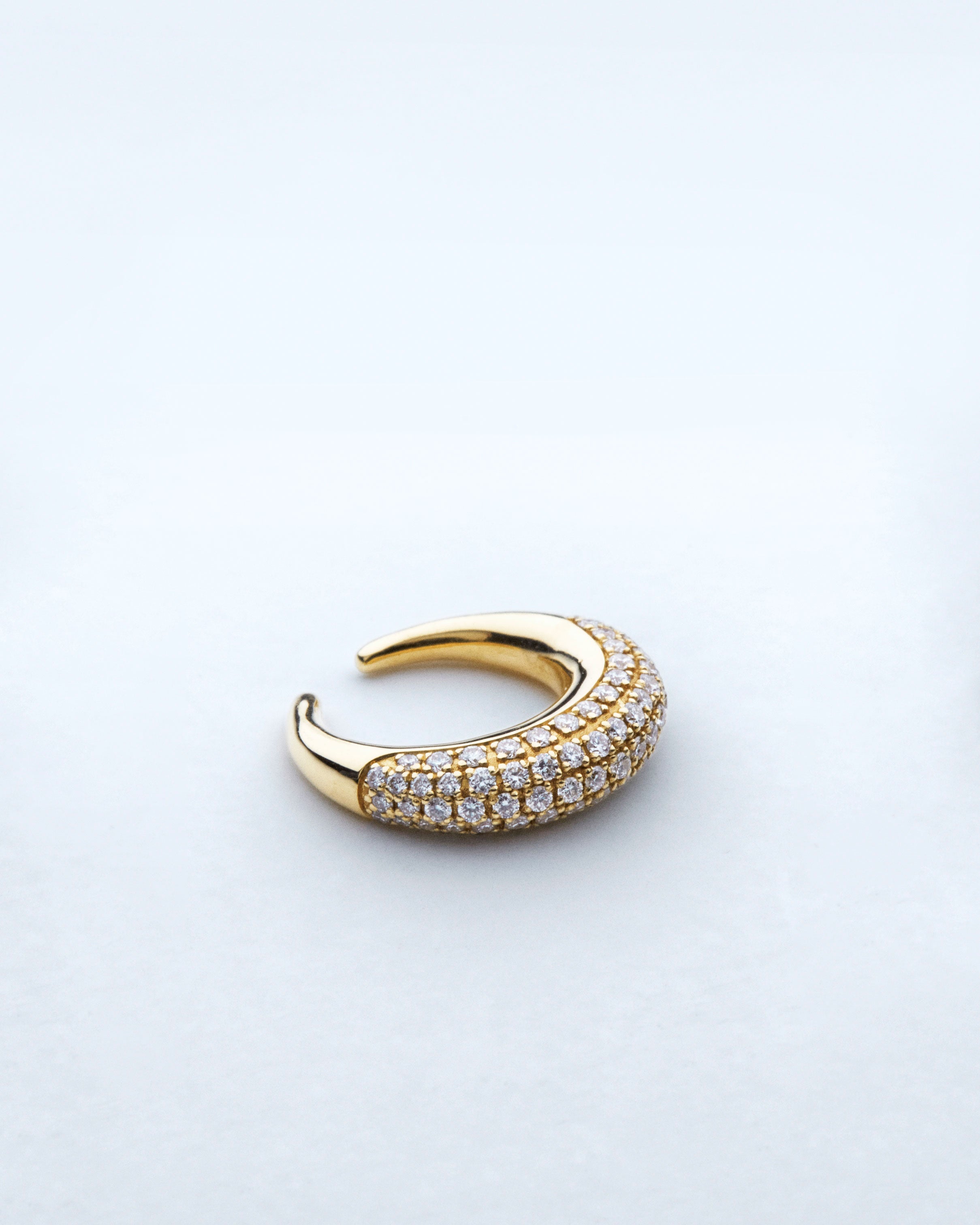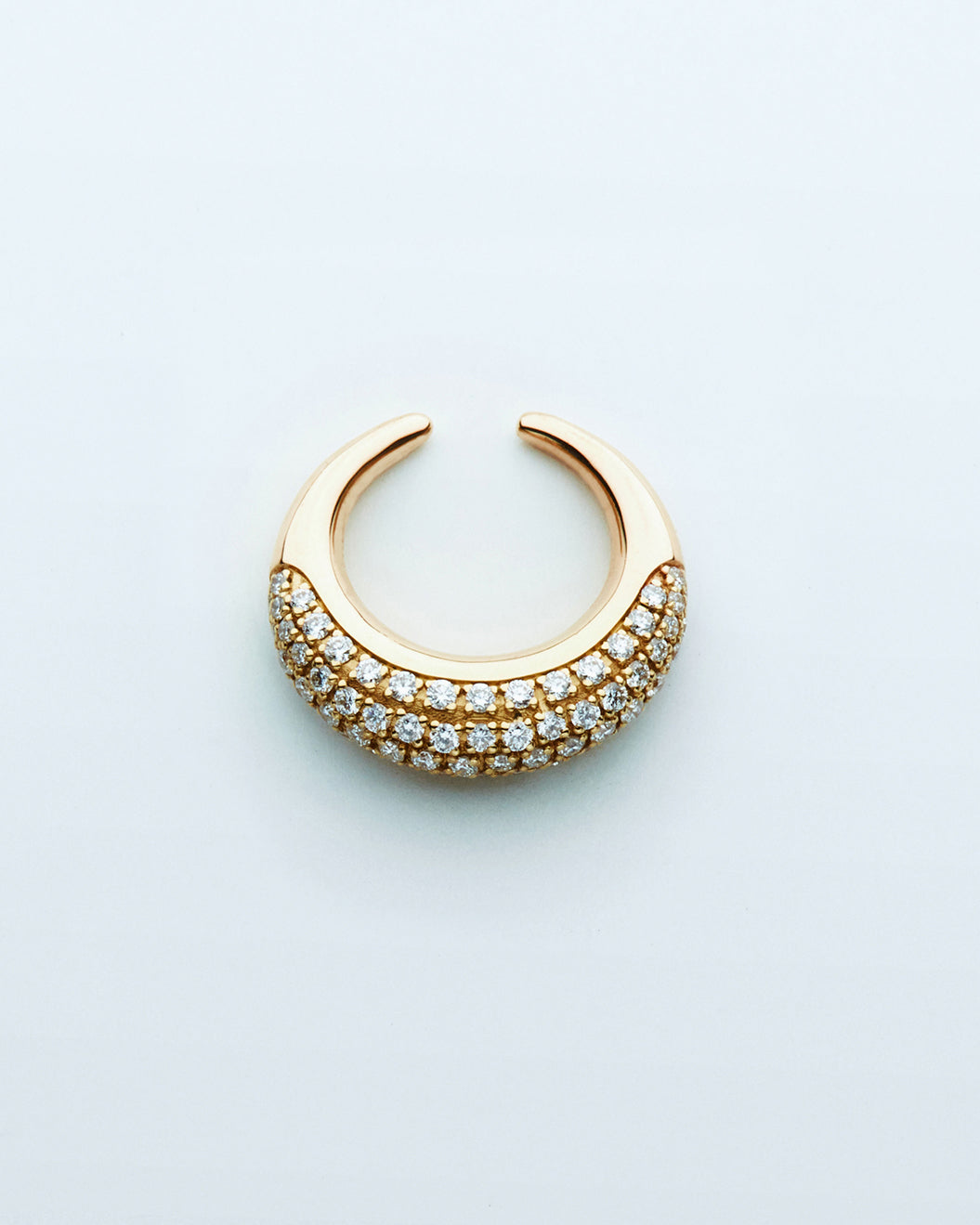 Taking its name from a Venezuelan delicacy, this delicious ear cuff exhibits an elegant set of diamonds in five rows spanning half of the band. Subtle and elegant, this timeless diamond and 18K gold piece is intended to be worn everyday.